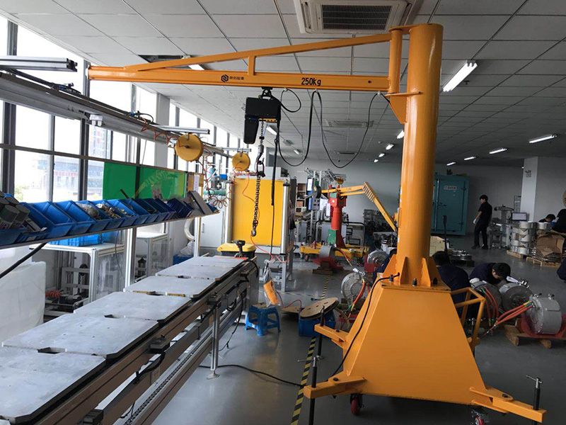 UPMAX250kg移動(dòng)式懸臂吊,可以在車間隨意移動(dòng)吊取重物。定柱式旋臂起重機(jī)合作了可靠性高的AMH型環(huán)鏈電動(dòng)葫蘆尤其適用于短距離,運(yùn)用頻頻,密布性吊運(yùn)作業(yè),具有高效、節(jié)能、省勁、占地面積小,易于操作與修理等特色。環(huán)鏈電動(dòng)葫蘆有起升和在橫梁上往復(fù)運(yùn)行的功用,旋臂梁可由反轉(zhuǎn)設(shè)備上的的減速機(jī)股動(dòng)滾輪進(jìn)行反轉(zhuǎn)運(yùn)動(dòng),電器操控箱裝置在環(huán)鏈葫蘆上。 本機(jī)操作通過(guò)手電門按鈕實(shí)現(xiàn)。手電門有八個(gè)按鈕,別離操控快升、快降、慢升、慢降、左右反轉(zhuǎn)及葫蘆小車的水平前后行走。留意:1、 操作時(shí)不得一起按下快慢按鈕和同一電機(jī)的橫豎轉(zhuǎn)按鈕 。